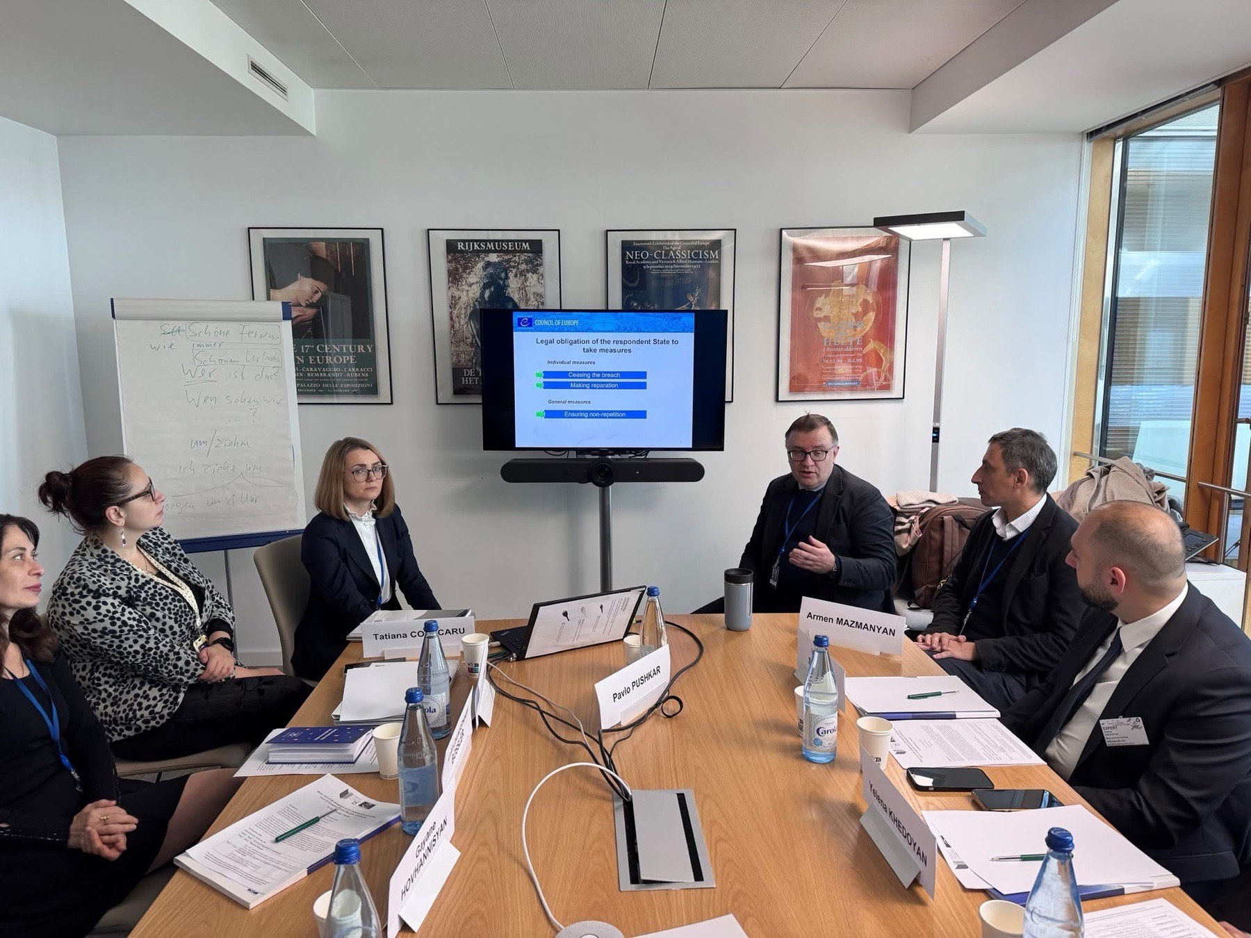 Հանդիպումների շրջանակում մանրամասնորեն քննարկվել են Մարդու իրավունքների եվրոպական դատարանի վճիռների կատարման մեխանիզմները, ներպետական մակարդակում դրանց կիրառման հիմնական մարտահրավերները, ինչպես նաև Հայաստանի դեմ վճիռների կատարման ընթացիկ վիճակը։ Պատվիրակությանը ներկայացվել են իրավախորհրդատուի գրասենյակի աշխատանքի առանձնահատկությունները՝ ուղղված Մարդու իրավունքների եվրոպական դատարանի նախադեպային իրավունքի միասնականության ապահովմանը։