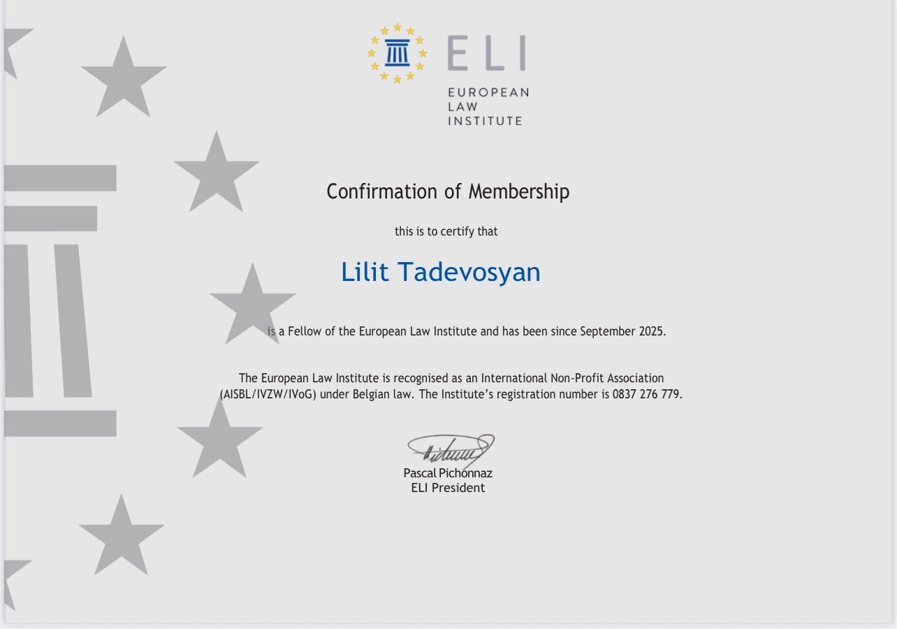 ՀԱՅԱՍՏԱՆԻ ՀԱՆՐԱՊԵՏՈՒԹՅԱՆ ՎՃՌԱԲԵԿ ԴԱՏԱՐԱՆԸ՝ ՈՐՊԵՍ ԻՆՍՏԻՏՈՒՑԻՈՆԱԼ ԿԱՌՈՒՅՑ, ՀՀ ՎՃՌԱԲԵԿ ԴԱՏԱՐԱՆԻ ՆԱԽԱԳԱՀ ԼԻԼԻԹ ԹԱԴԵՎՈՍՅԱՆԸ՝ ՈՐՊԵՍ ՊԱՏՎԱՎՈՐ ԱՆՀԱՏ ԱՆԴԱՄ ՊԱՇՏՈՆԱՊԵՍ ԸՆԴԳՐԿՎԵԼ ԵՆ ԵՎՐՈՊԱԿԱՆ ԻՐԱՎՈՒՆՔԻ ԻՆՍՏԻՏՈՒՏԻ (EUROPEAN LAW INSTITUTE) ԿԱԶՄՈՒՄ